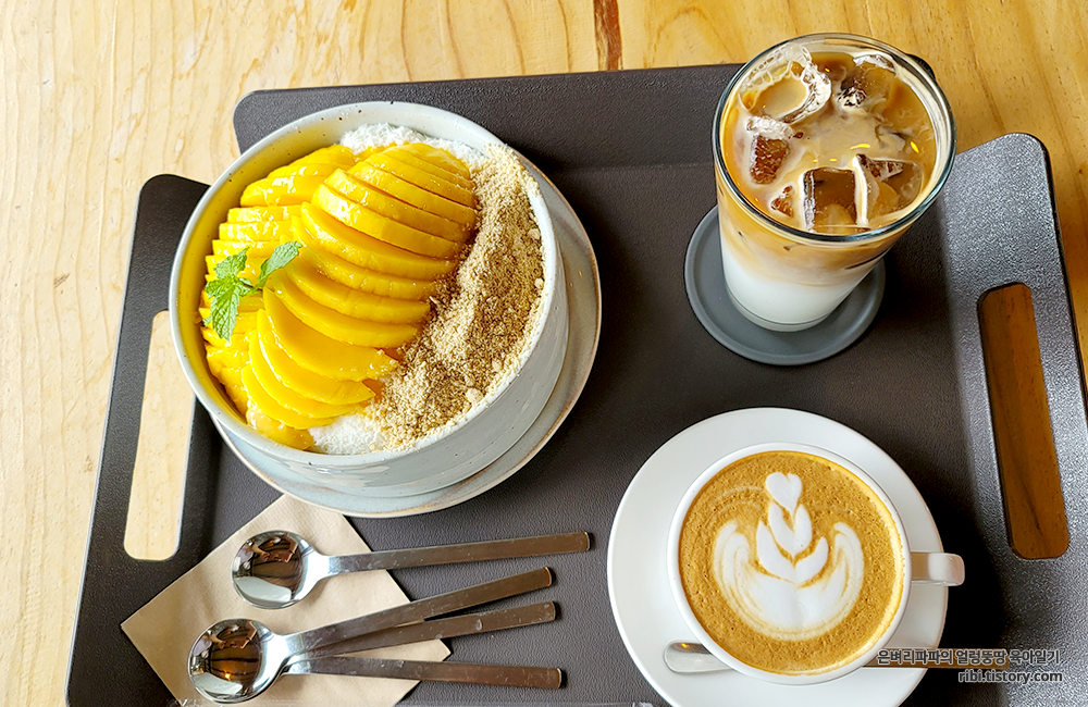 아이들과 함께 망고빙수를 먹으로 카페를 방문했어요.