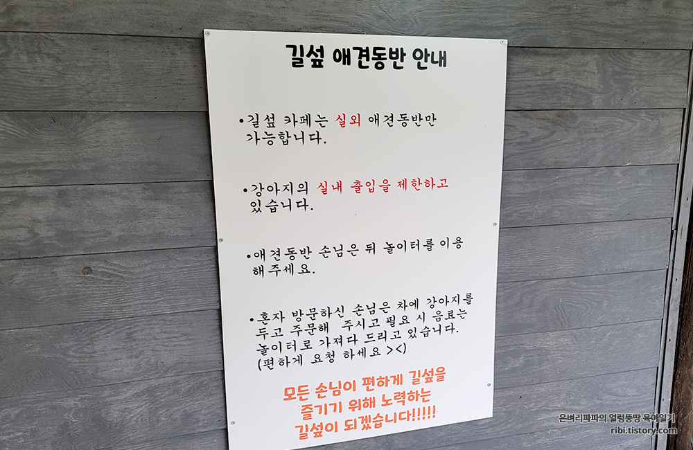 애견 동반은 가능하나, 실내 출입은 금지되어 있네요.