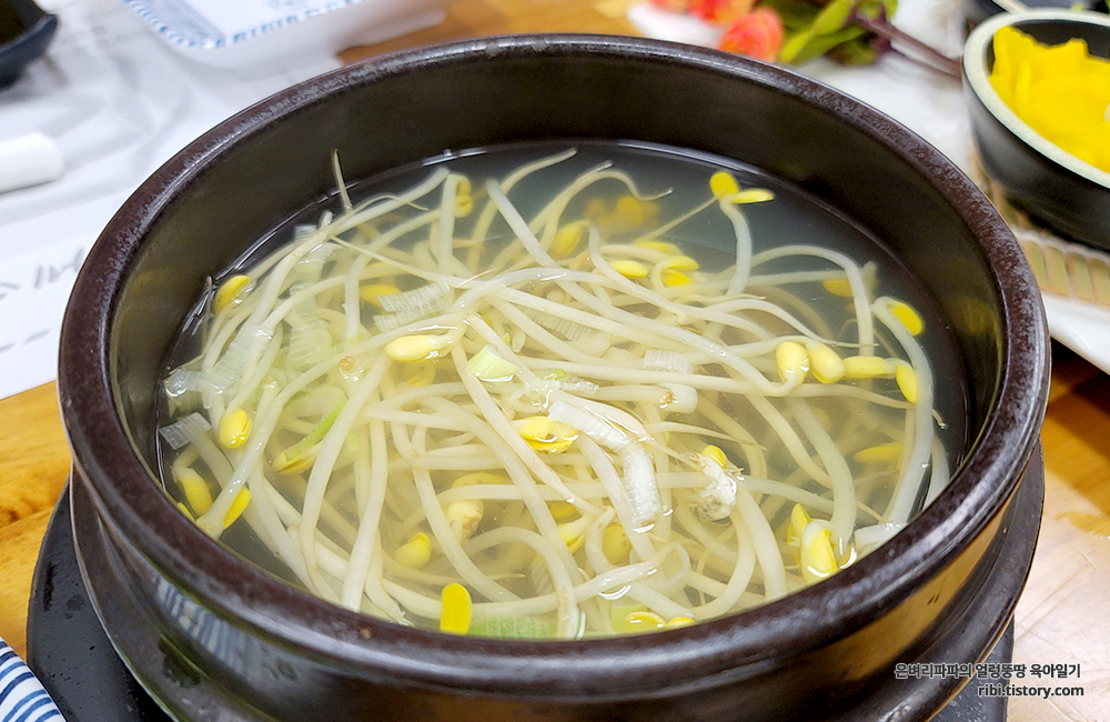 샐러드와 시원한 콩나물국은 앞접시에 덜어 먹을 수 있게 큼지막하게 나옵니다.