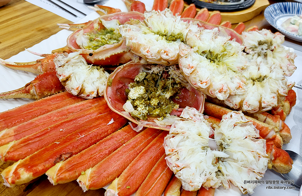 얼마 지나지 않아 직접 골랐던 대게가 아주 맛있게 상위에 올랐습니다.