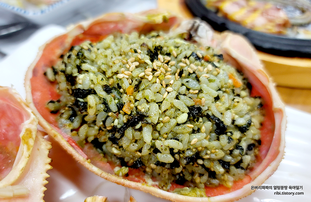 게딱지에 볶음밥이 들어 있어, 더 맛이 배가 되는 것 같아요.