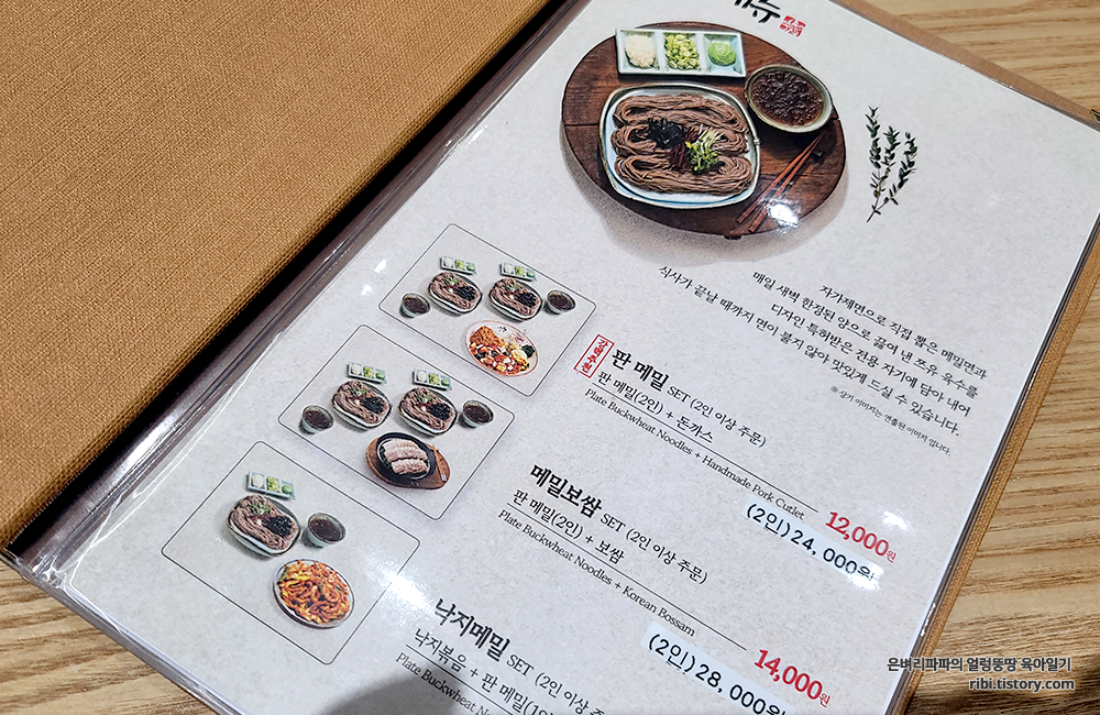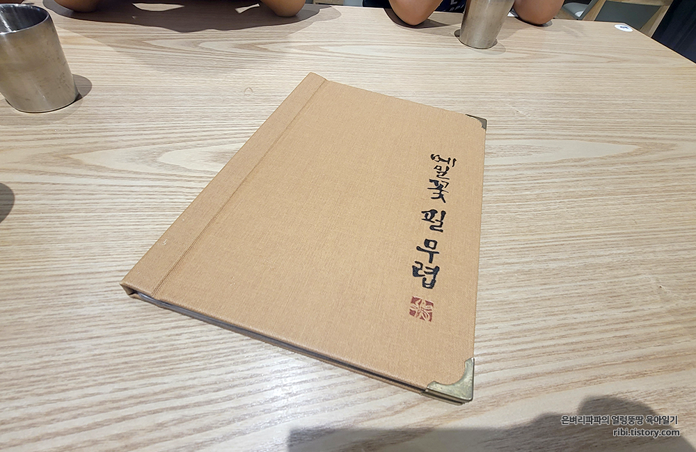 테이블 위에 놓여 있는 메뉴판을 살펴봅니다.