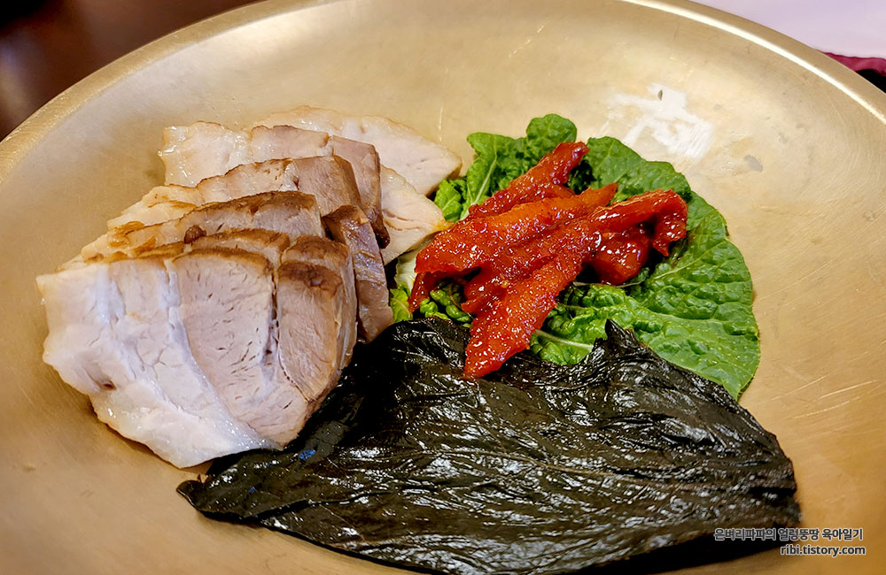 묵직한 놋그릇과 수저가 대접받는 느낌입니다.