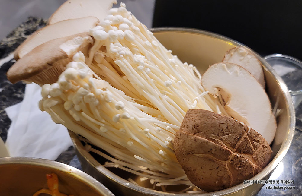냉동삼겹살과 함께 버섯 모둠과 맬젓도 함께 추가 주문했어요.