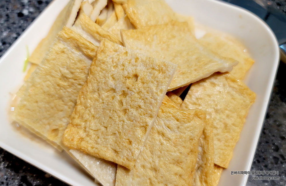 또 한 번 끓기 시작하면 그때 사각어묵을 넣어줍니다.