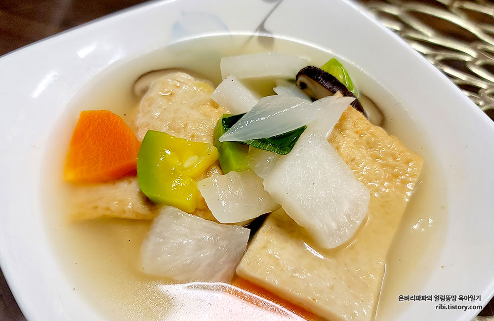 재료 : 무, 양파, 당근, 애호박, 어묵, 고추, 버섯, 대파