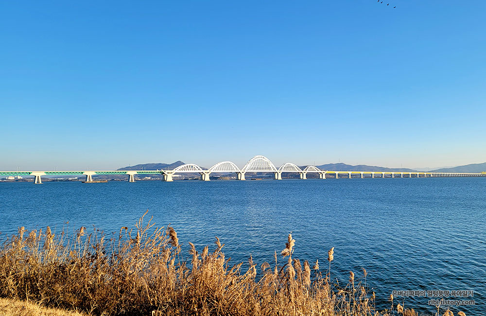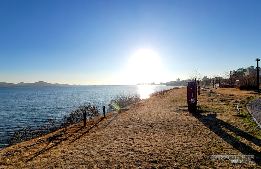 햇빛을 받아 반짝반짝 빛나는 평택호도 인상적입니다.