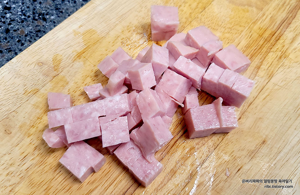 만드는 양이 조금 많으면 깡통햄을 따로 볶아서 준비해 주세요.