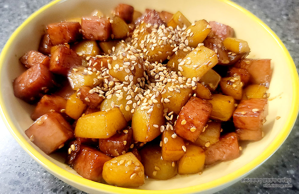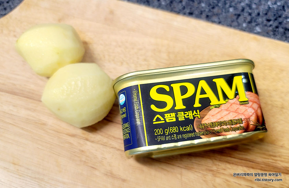 감자는 깡통햄과 궁합이 너무 잘 맞는 것 같아요.