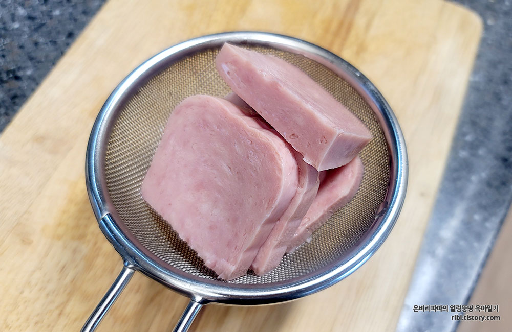 깡통햄은 뜨거운 물에 한번 데치거나,