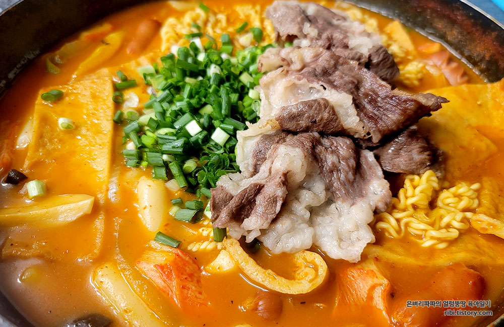 여느 배달음식 부럽지 않은 한우차돌박이 국물떡볶이가 완성되었습니다.