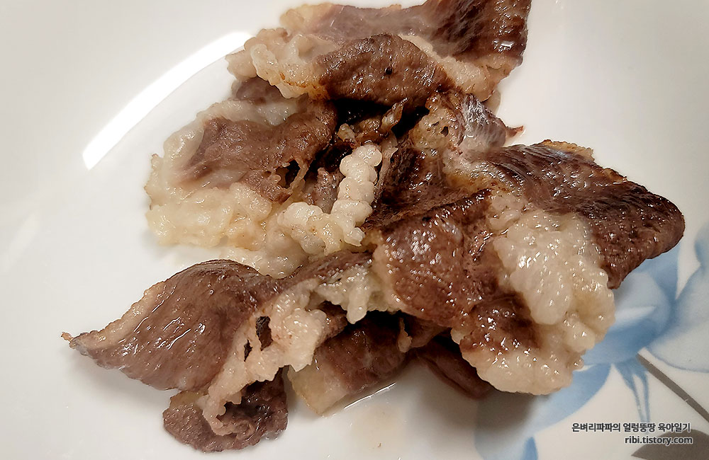 한우 차돌박이는 따로 구워 접시에 담아 둡니다.