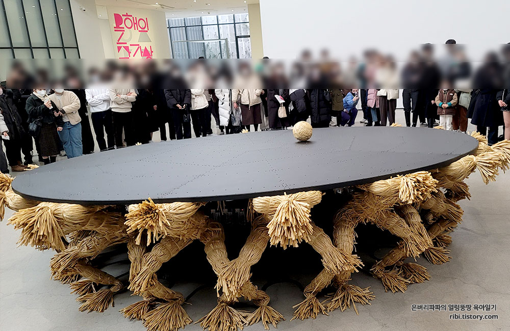한 바퀴를 돌고 오니, 여전히 [원탁] 작품 주변으로 관람객들이 많습니다.