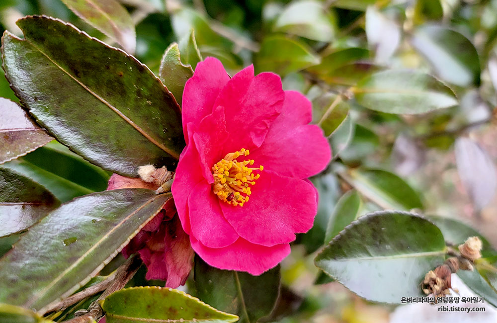 꽃을 다 떨궈버린 동백나무가 야속하기만 합니다.ㅋㅋㅋ