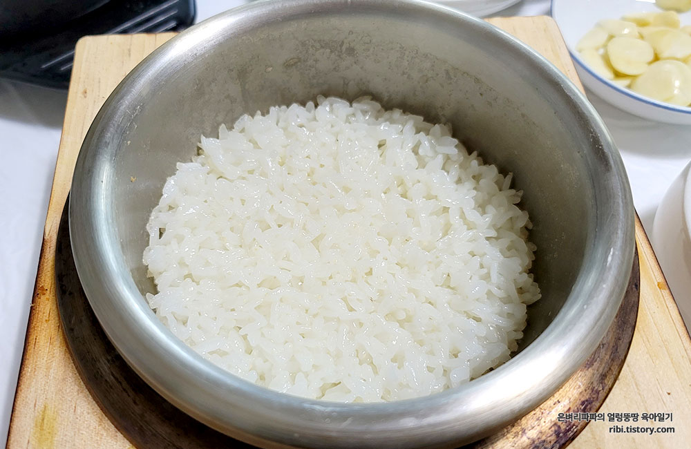 그리고 밥은 솥밥으로 변경했어요.