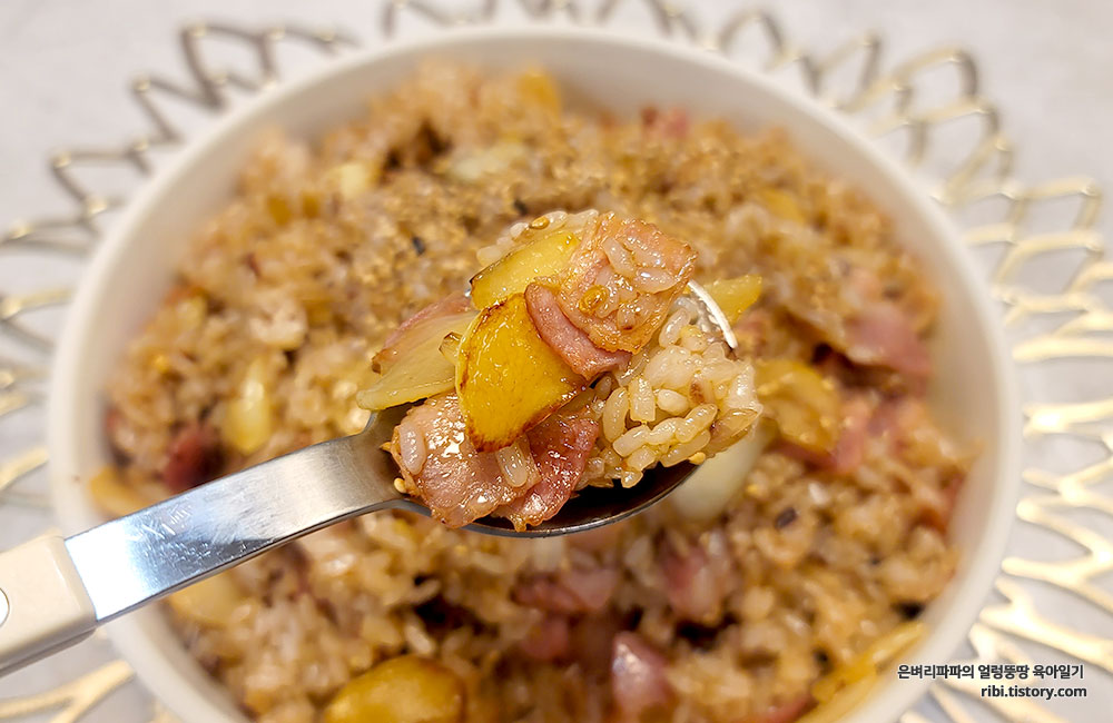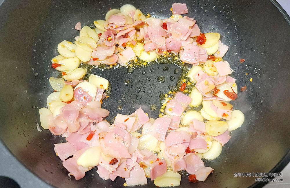 마늘과 베이컨은 바싹 익혀주는게 맛있는 것 같아요.^^