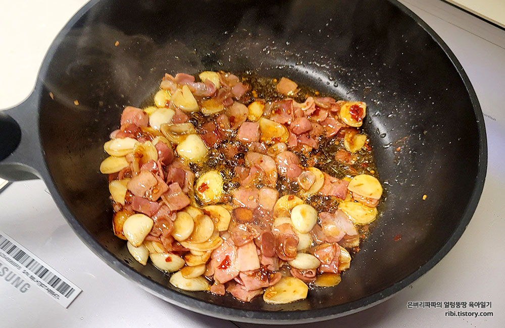 마늘과 베이컨이 익어갈때쯤