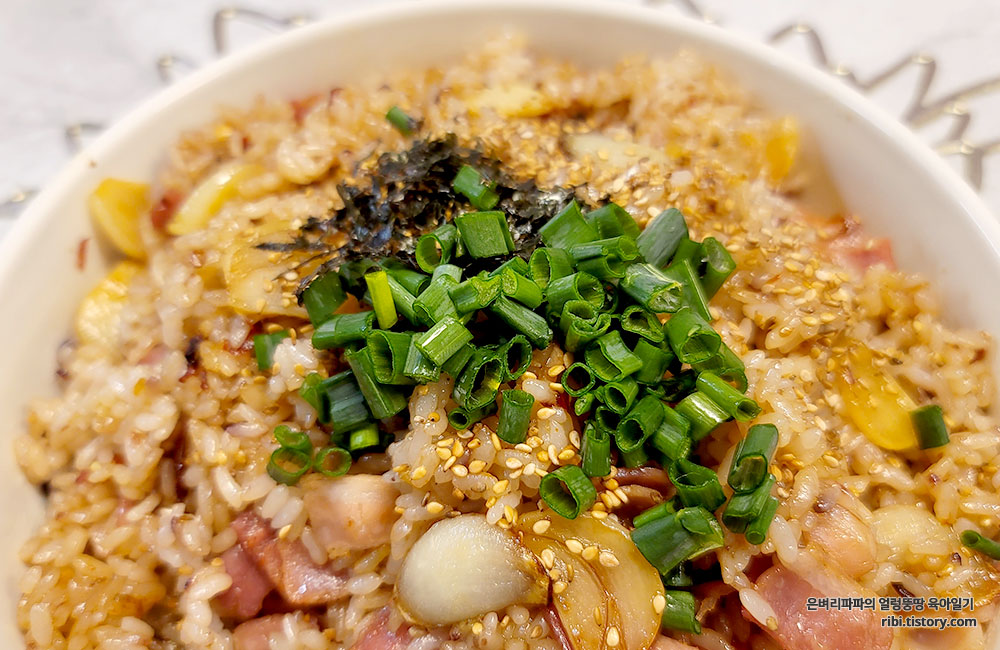 딸아이의 마지막 주문~ 쪽파를 볶음밥 위에 올려달라는군요.^^