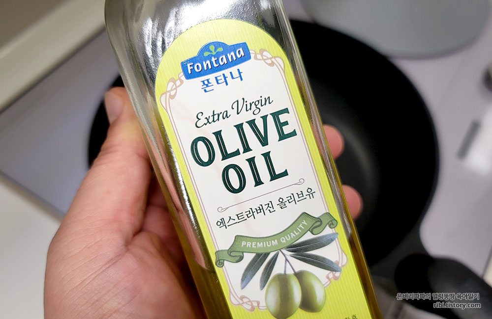 볶음팬에 올리브유를 넉넉하게 두르고, 썰어놓은 마늘을 먼저 넣고 볶아주세요.