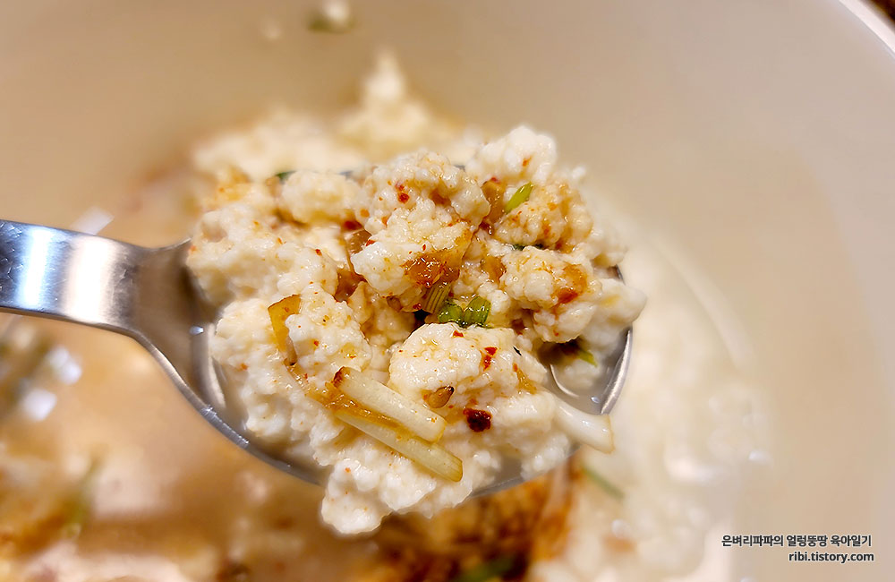 남은 순두부 국물에는 밥을 말아 후로록~