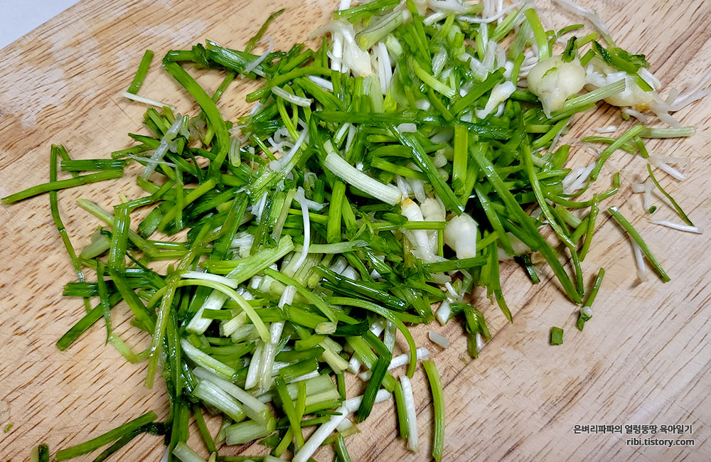 마지막으로 손질한 달래를 잘게 썰어 넣어 섞어주면 달래장 만들기 완성~