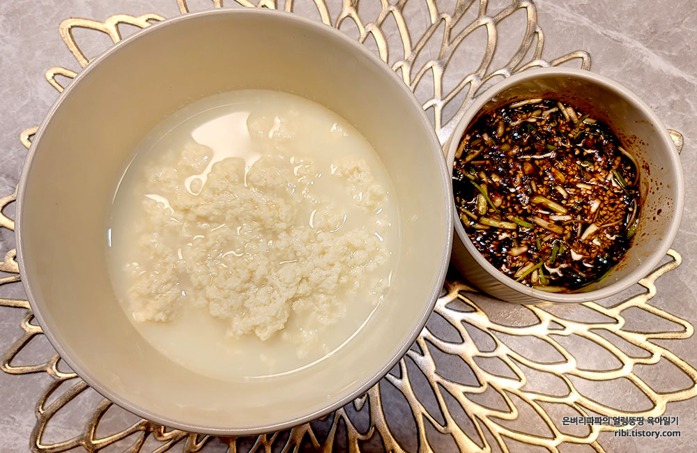 작은 소스그릇을 꺼내었다가, 크기가 작을 것 같아 밥공기를 이용했어요.ㅋㅋㅋ