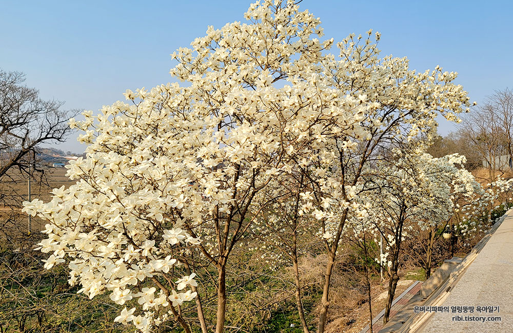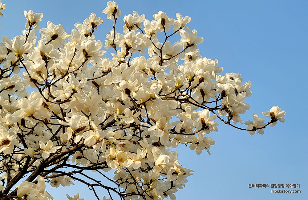 하얀 목련이 만개한 모습을 아주 가까이에서 볼 수 있었어요.
