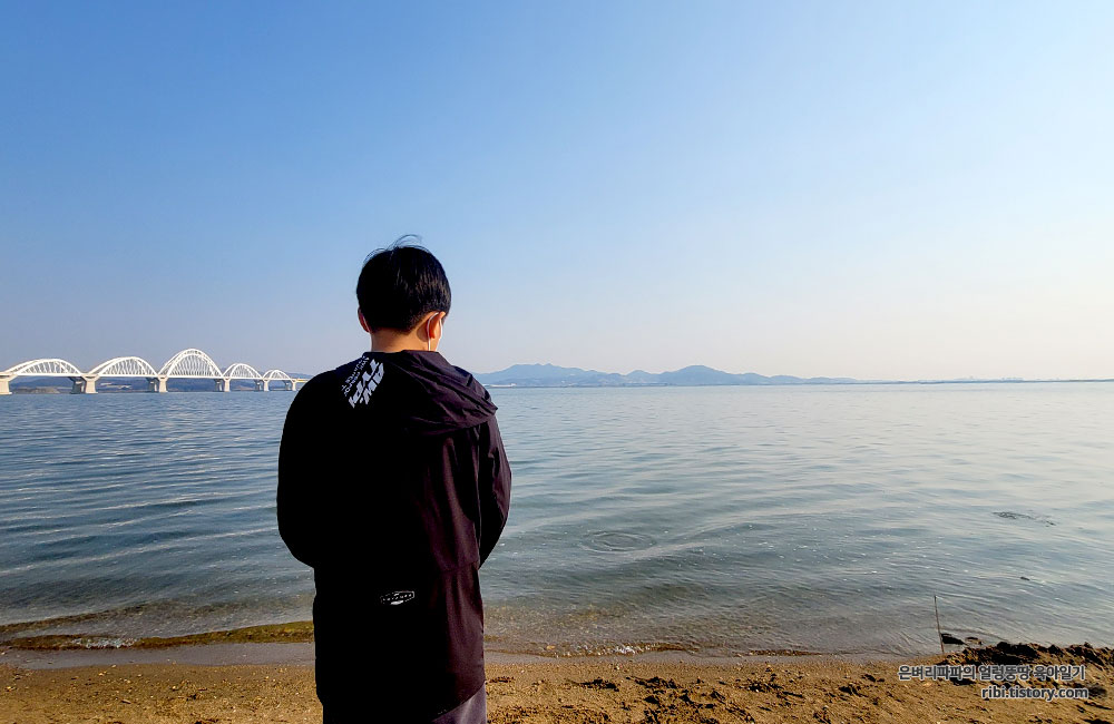 평택호가 한눈에 보이는 벤치에 앉아 따스한 봄햇살을 느끼며 물멍을 때렸습니다.