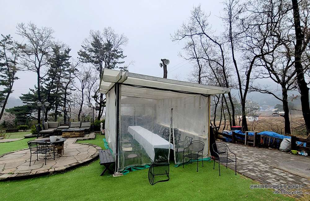 비가 오지 않았더라면 야외 테이블도 사용할 수 있었을 텐데 말이죠.