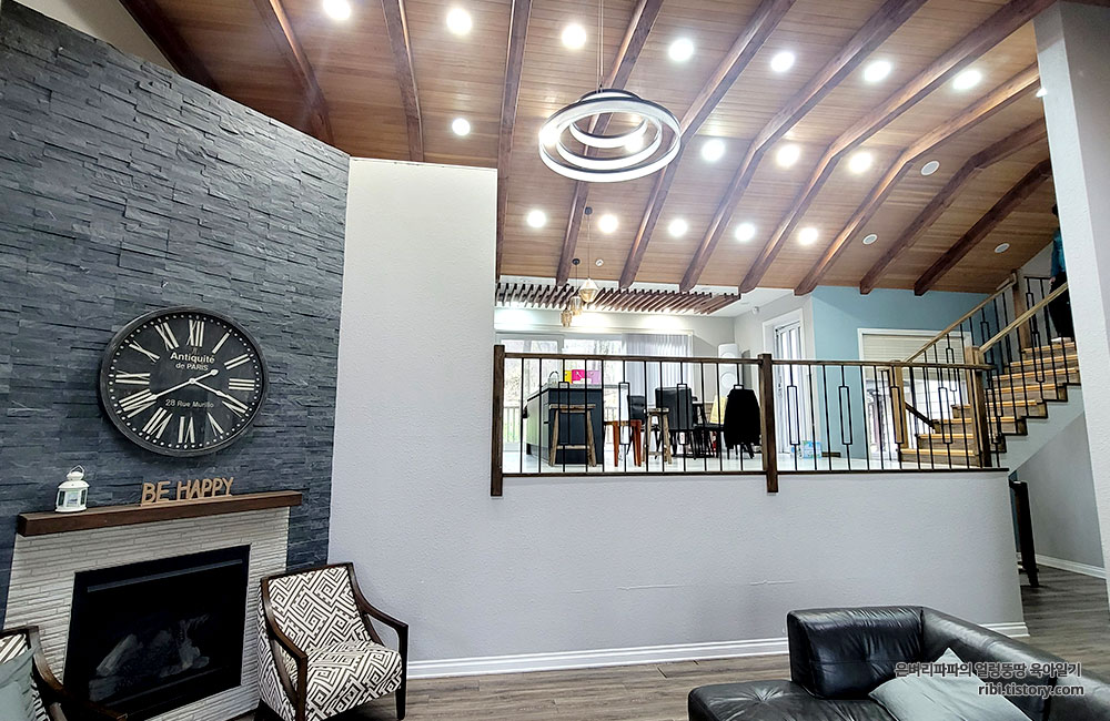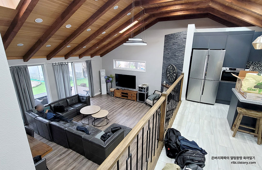 층고 높은 거실에 다 같이 모여 약 4시간 동안 워크숍을 진행했습니다.