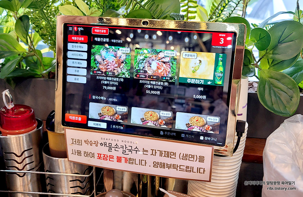 자리에 앉자마자, 테이블마다 놓여 있는 태블릿으로 주문을 해봅니다.