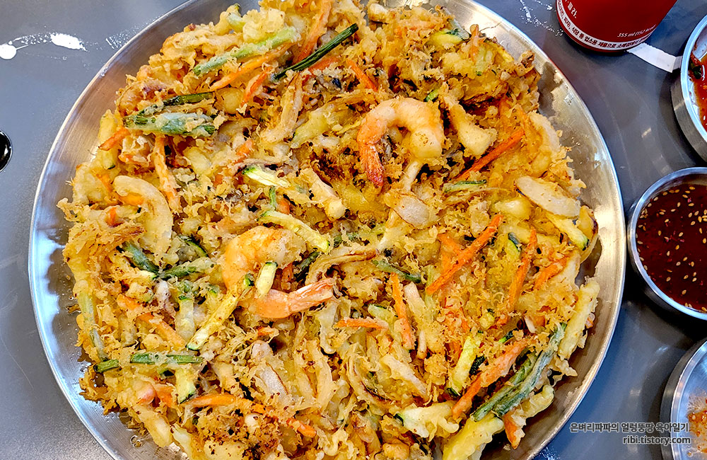 해물과 채소가 적당히 어우러져 전인 듯 튀김인 듯~ 자꾸만 손이 가네요.^^