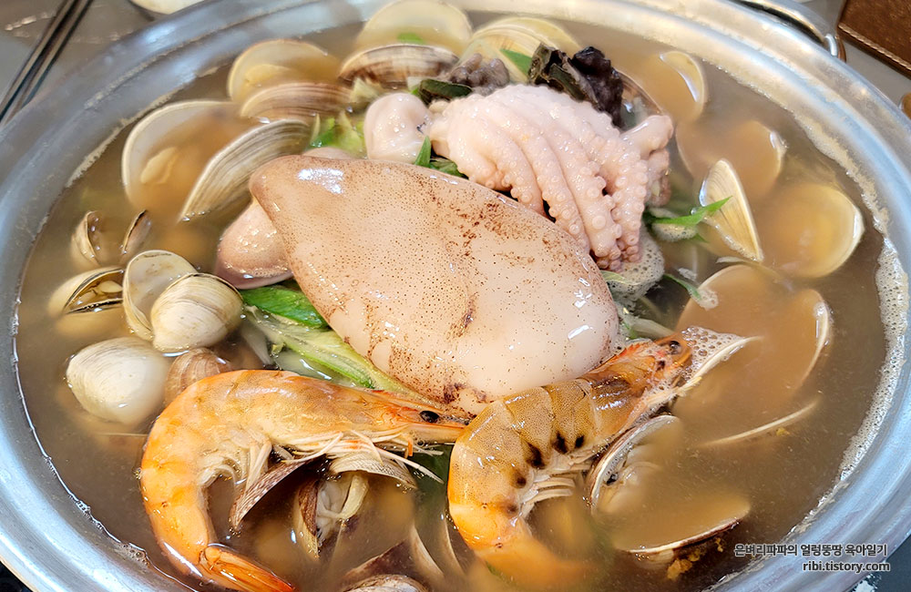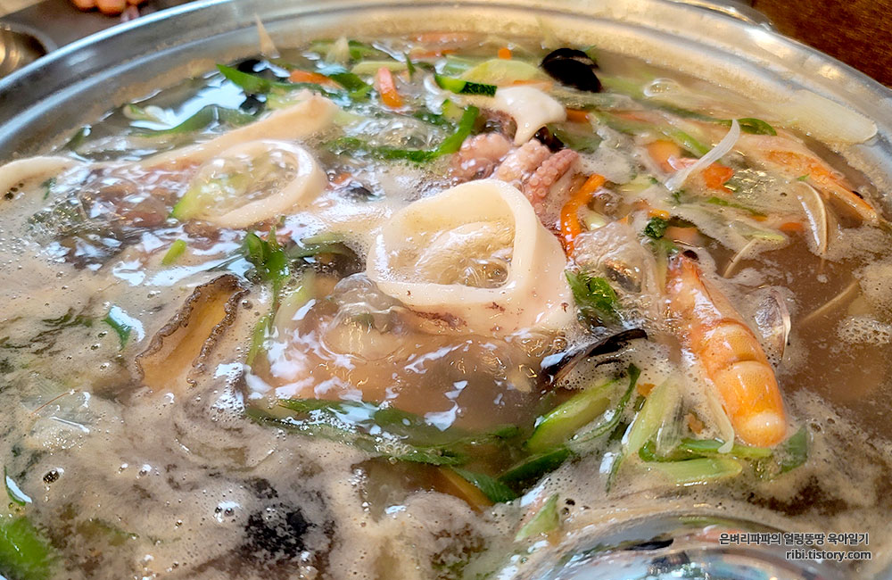 오징어만 익히면 조개를 비롯한 해물을 먼저 건져 먹으면 됩니다.^^