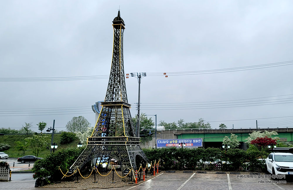 제법 큰 크기의 에펠탑이 주차장 하편에 자리하고 있네요.