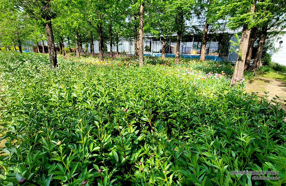 바로 옆에 위치한 작약군락지에서는 작약이 빨간 꽃을 피우려 준비를 하고 있더라고요.