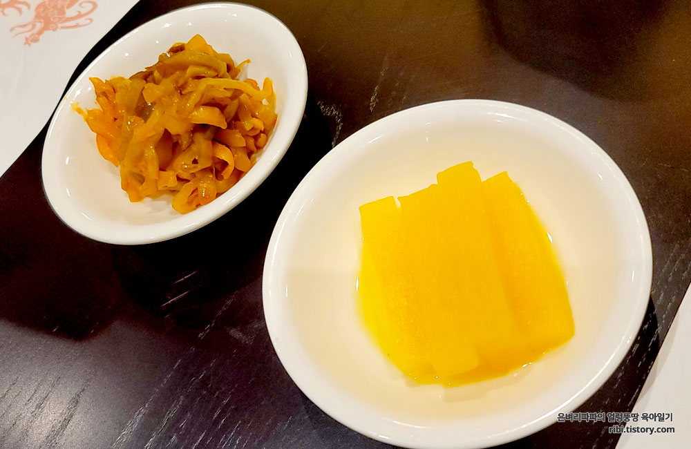좌석에 앉자마자 단무지와 짜사이가 세팅됩니다.