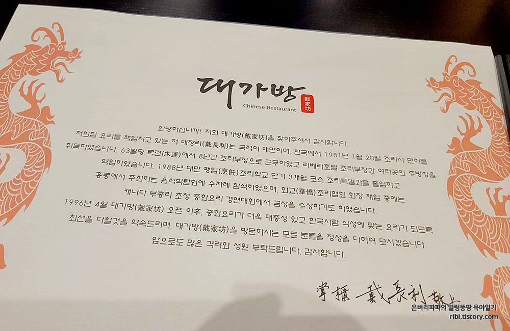 꽤 유명한 셰프의 중식당이로군요.