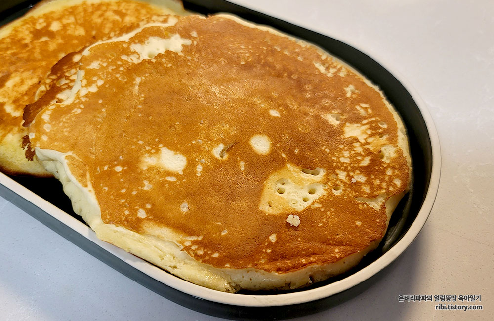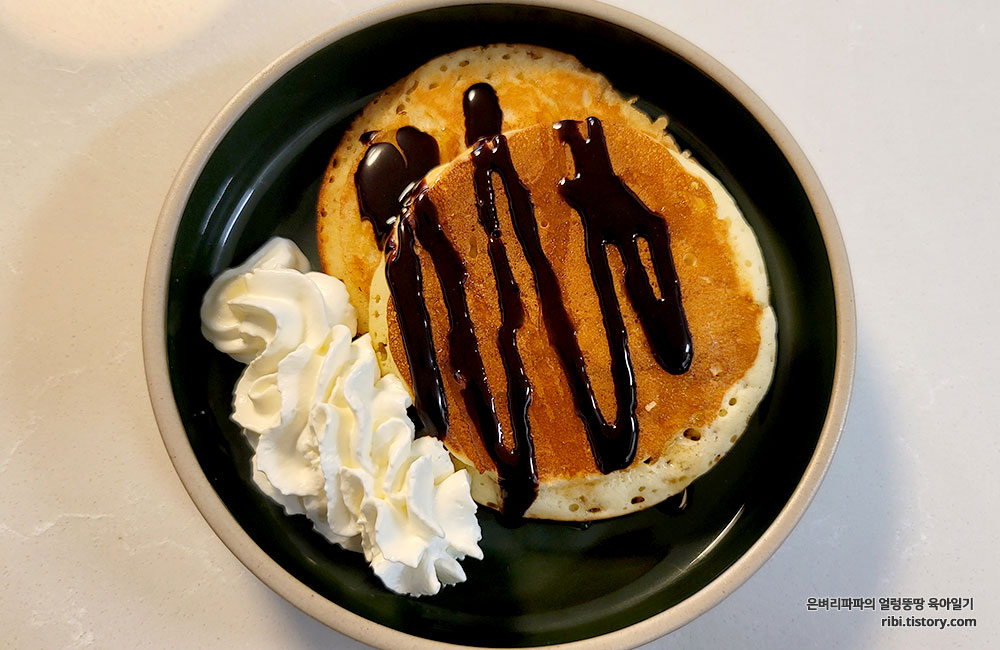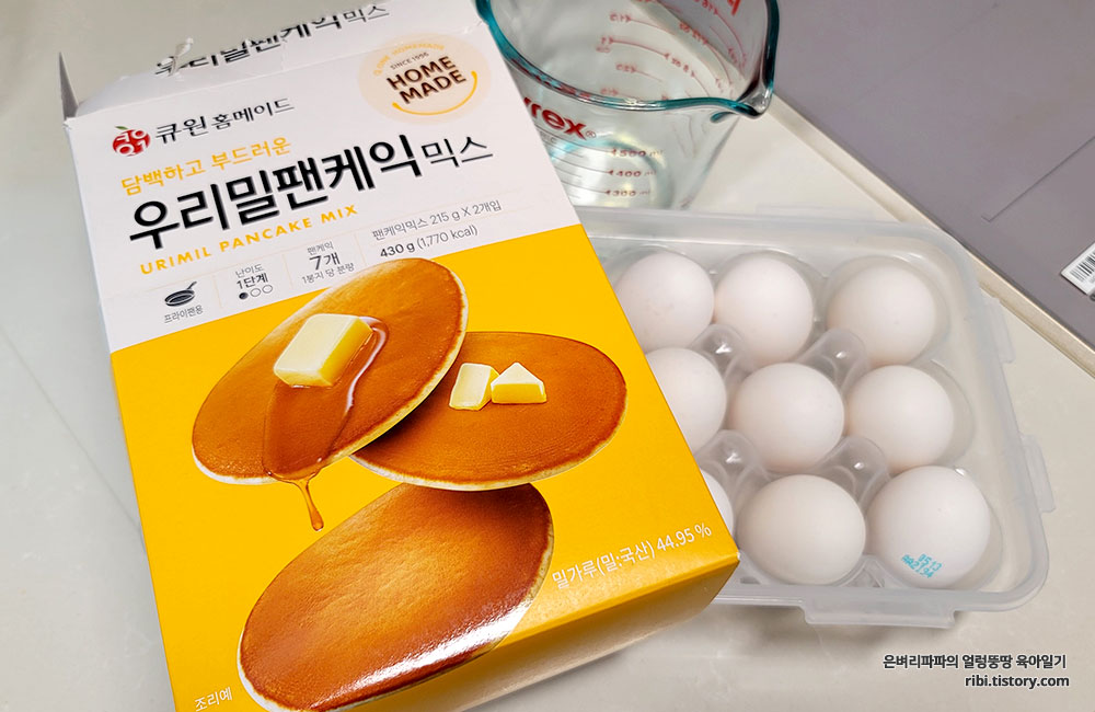 재료 : 우리밀팬케익믹스, 계란, 물 110ml, 버터 또는 올리브유