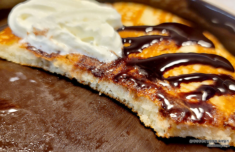 폭신한 팬케익과 달콤한 초코시럽~ 그리고 부드러운 생크림까지....