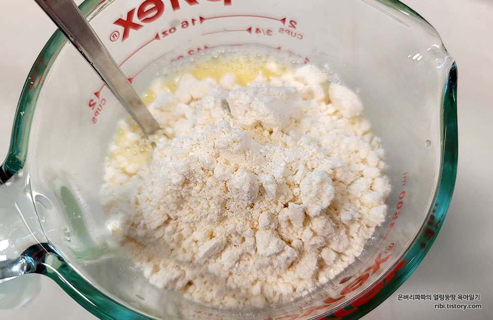 사용 설명서대로 반죽을 만들어 봅니다.
