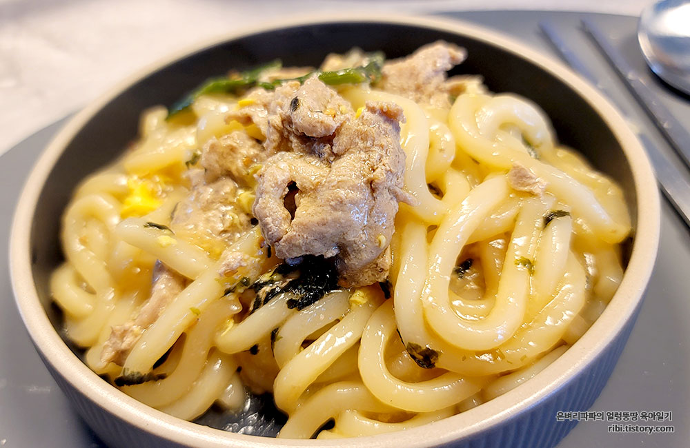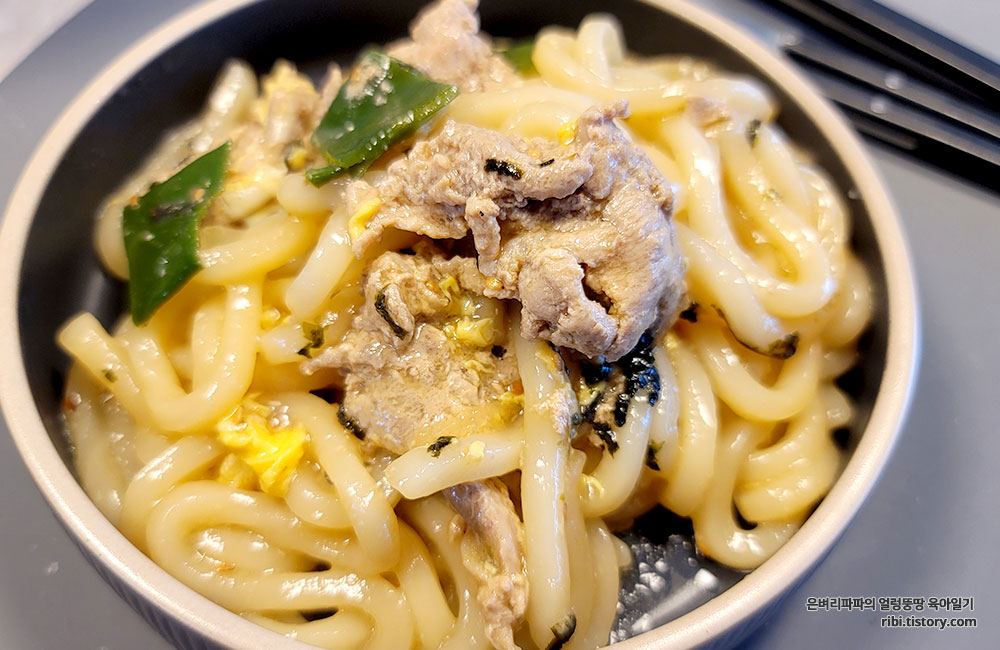 남은 돼지불고기를 이용한 초간단 한 끼~ 일본식 덮밥이 아닌 덮우동~!