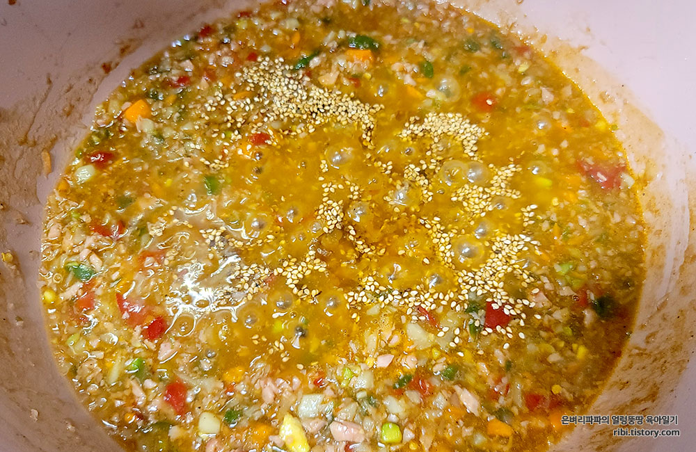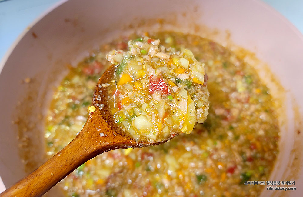 전분가루가 있으면 조금 넣어 주세요.