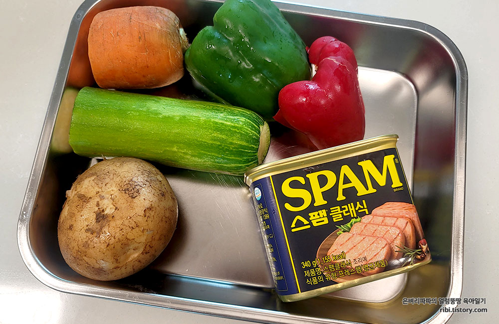 마지막으로 깡통햄도 동일한 방법으로 준비했어요.