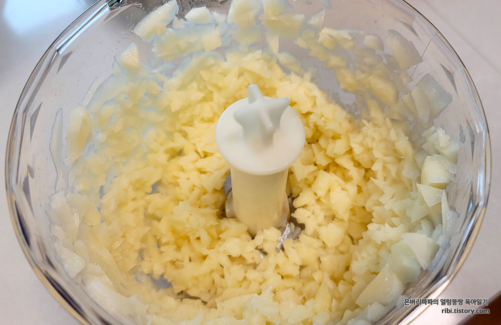 전 푸드 프로세서를 이용해 잘게 다져줬습니다.