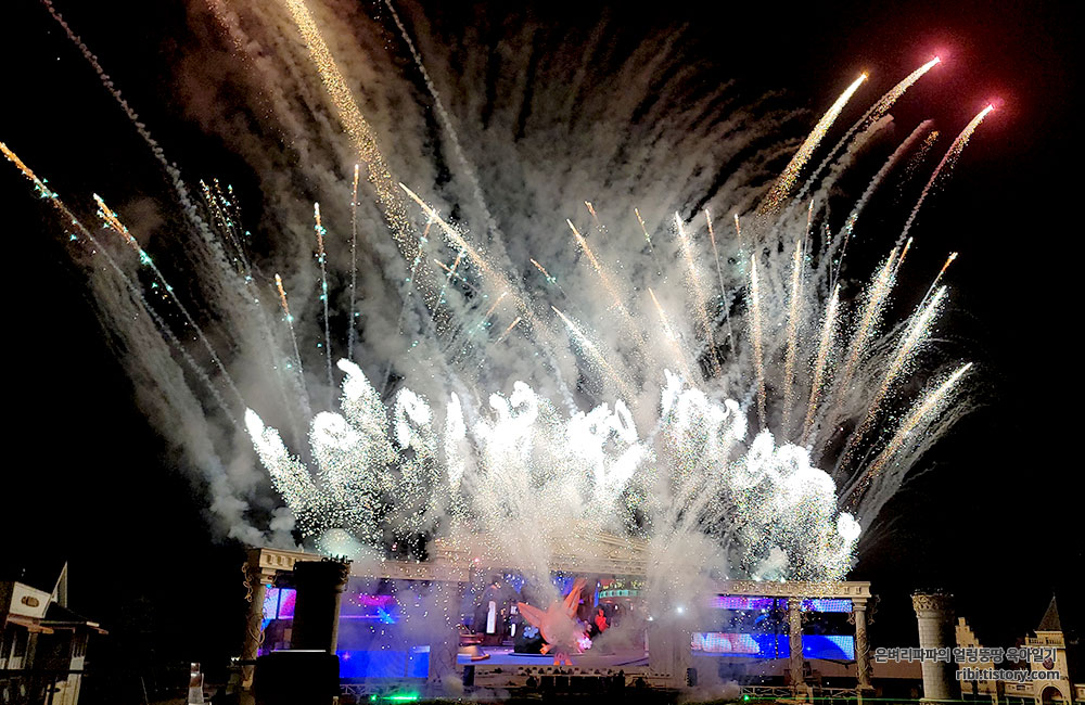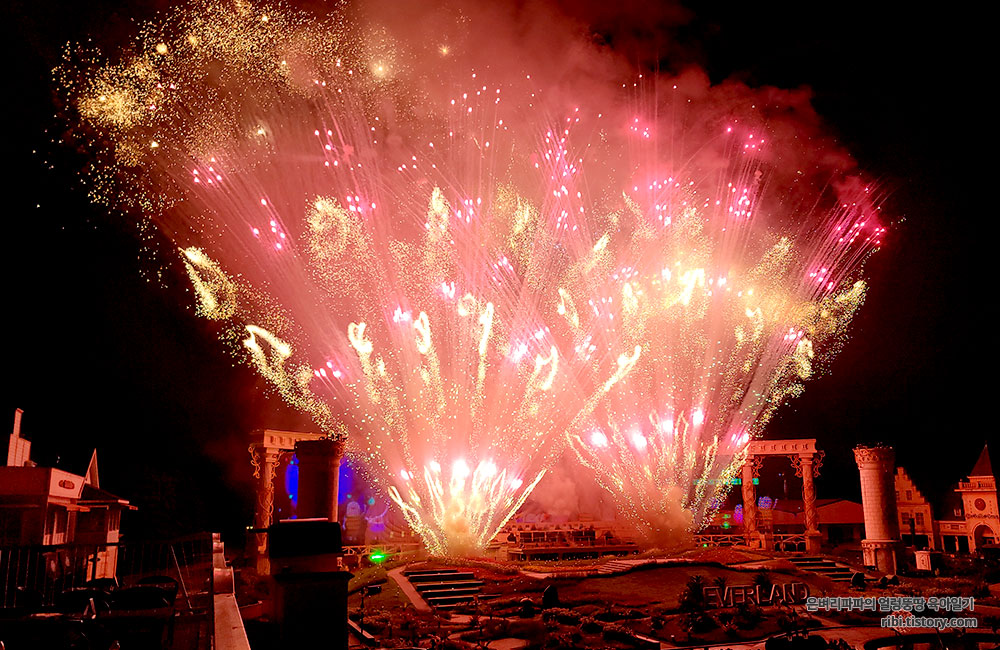 시즌마다 다른 주제로 화려한 밤을 수놓는 놀이공원의 불꽃놀이~