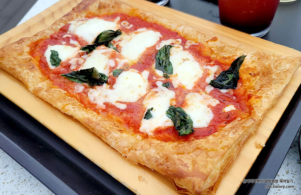특히 페스추리의 바삭함이 인상적이었던 마르게리타 피자를 아주 맛있게 먹었어요.