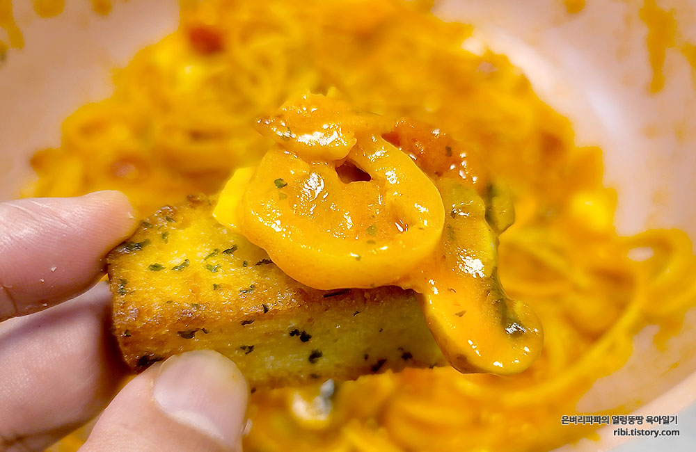 더불어 마트에서 사 온 마늘바게트도 함께 곁들였어요.