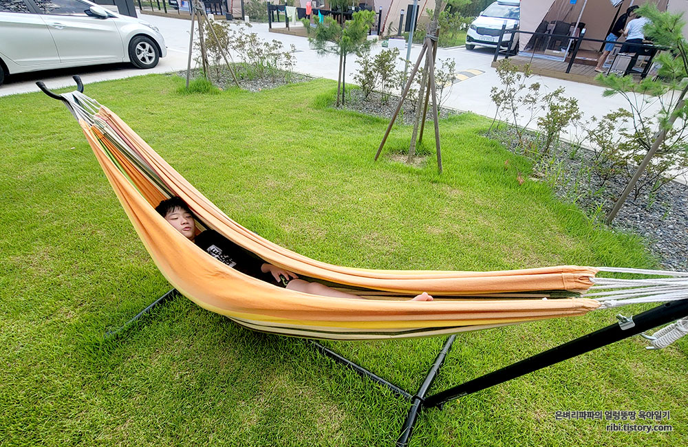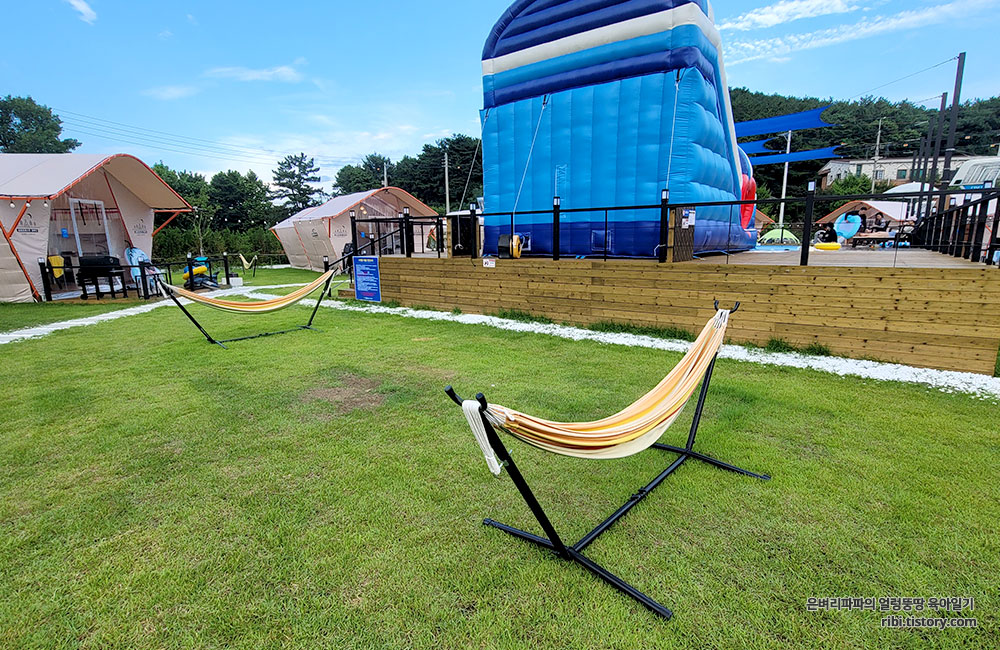 글램핑장 잔디가 있는 곳에는 공용으로 사용가능한 해먹도 있었는데요.