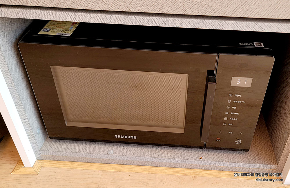 제일 아래칸에는 전자레인지도 있군요.