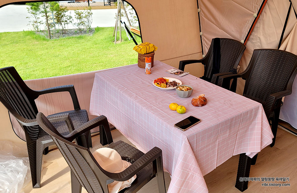 캠핑장 감성을 느낄 수 있는 글램핑장을 예약했습니다.